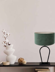 Bringen Sie einen Hauch von Luxus in Ihr Zuhause mit der Stang Tischlampe von Steinhauer. Der tiefgrüne Samtschirm in Kombination mit dem schwarzen Metallfuß schafft eine elegante und stilvolle Ausstrahlung. Diese Tischlampe ist ein echter Blickfang und bringt eine warme und einladende Atmosphäre in jeden Raum.