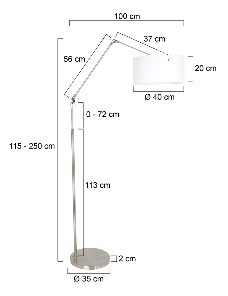 Eine Kombination aus Eleganz und praktischem Design macht diese Stehlampe zu einer Bereicherung für jedes Interieur. Der verstellbare Gelenkarm sorgt dafür, dass du immer das richtige Licht hast, egal ob du liest oder entspannst. Der sanfte, weiße Schirm verbreitet ein angenehmes und diffuses Licht, perfekt um eine warme und einladende Atmosphäre zu schaffen.