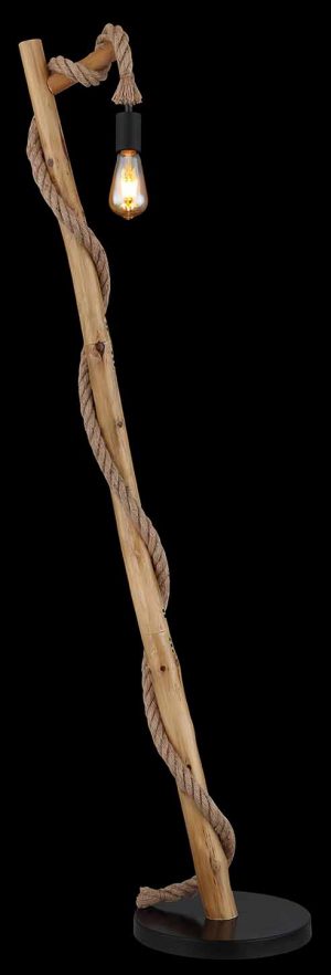 Schräge Stehlampe Natur/Schwarz Holz/Hanfseil Globo Ulleu