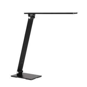 Die schwarze Tischlampe aus der Serenade-Serie ist eine elegante und praktische Wahl für Arbeits- und Lesebeleuchtung. Das integrierte 10 Watt LED-Modul hat eine Lichtausbeute von 900 Lumen und ist in vier Farbtemperaturen einstellbar (2200, 2800, 3400 und 4000 Kelvin). Die Höhe ist von 40 bis 70 cm verstellbar und das 190 cm lange Kabel sorgt für flexible Platzierung. Der Fuß hat die Abmessungen 18 cm mal 12 cm. Dank des neigbaren und drehbaren Arms kannst du das Licht genau dorthin richten, wo es benötigt wird.