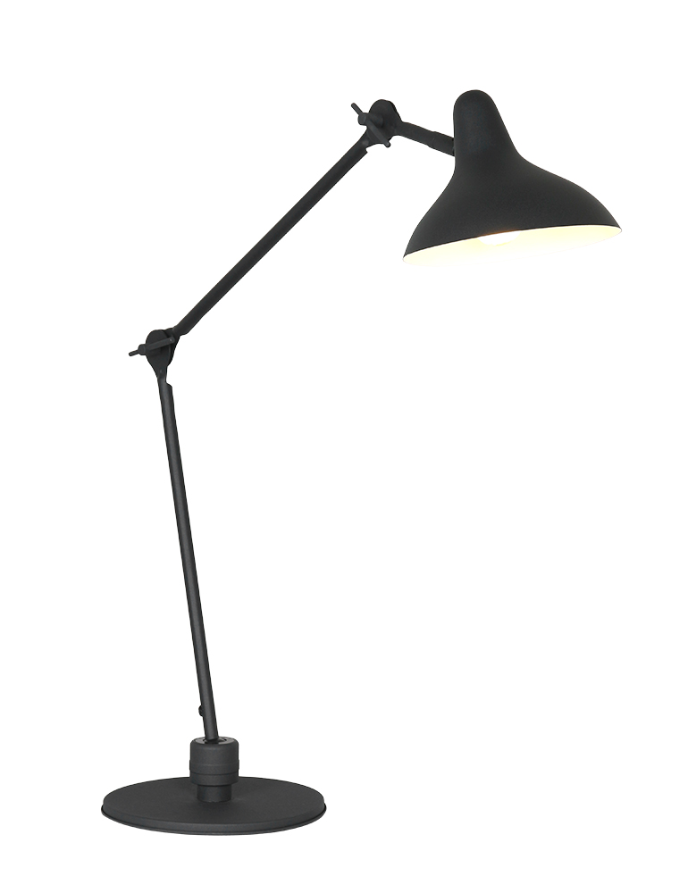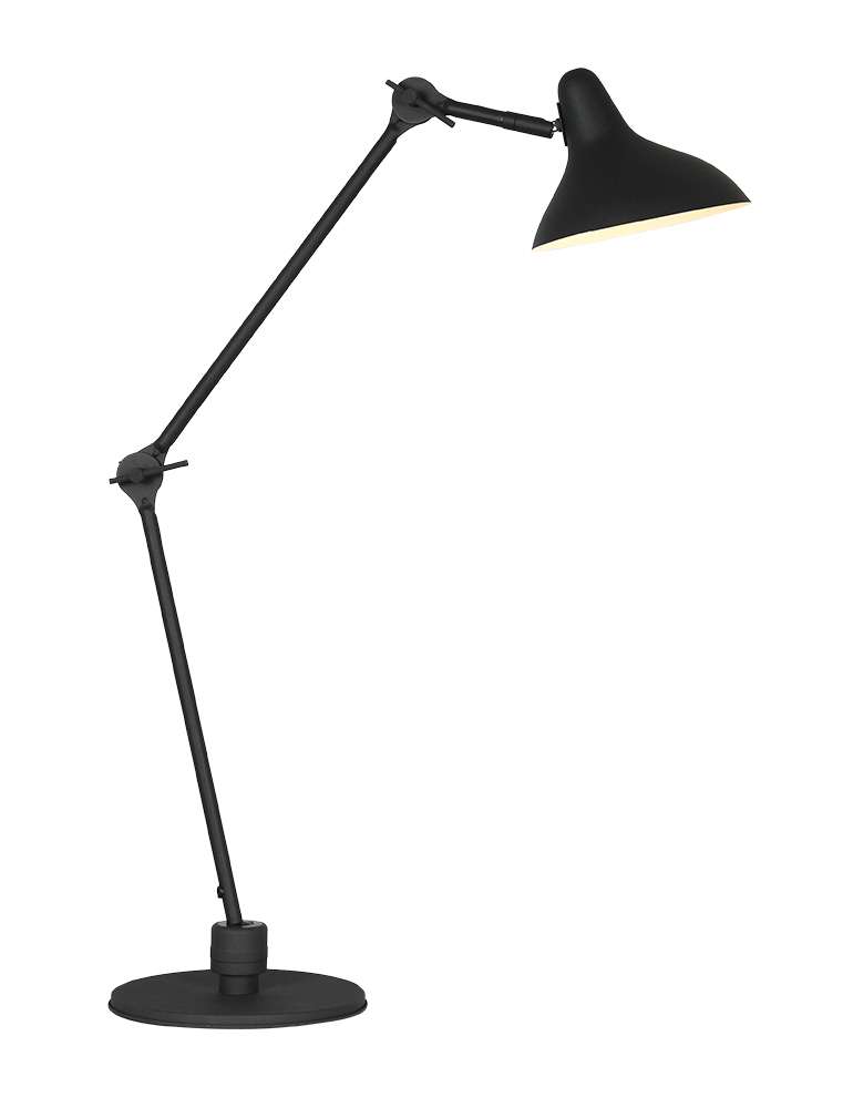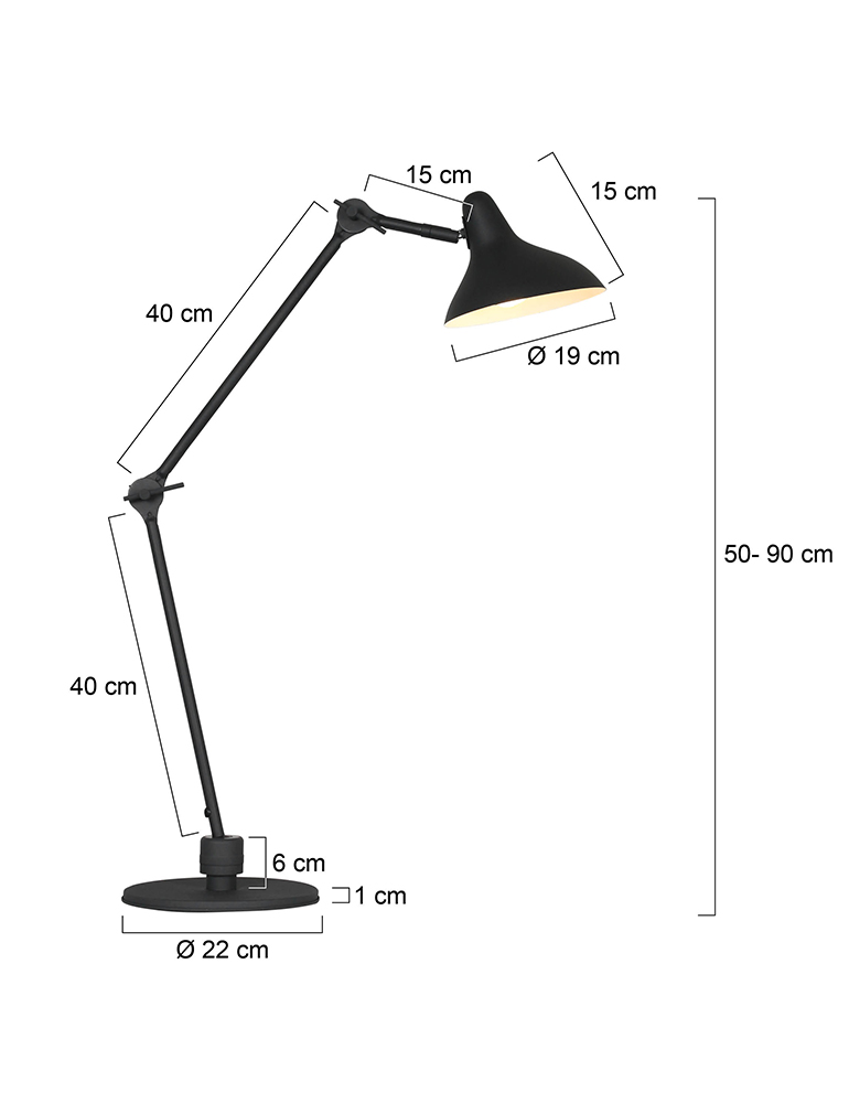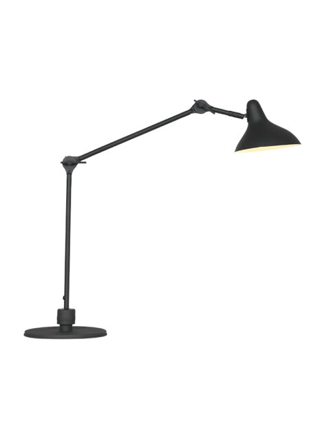 Die schwarze Tischlampe aus der Kasket-Serie hat eine E27-Fassung und ist geeignet für Lichtquellen bis 40 Watt. Die Lampe ist in der Höhe bis zu 90 cm verstellbar und bietet Flexibilität dank des schwenkbaren und drehbaren Schirms. Der Fuß hat einen Durchmesser von 22 cm und sorgt für eine stabile Basis. Die Lampe ist einfach mit einem Schnurschalter zu bedienen und dimmbar mit einer geeigneten Lichtquelle.