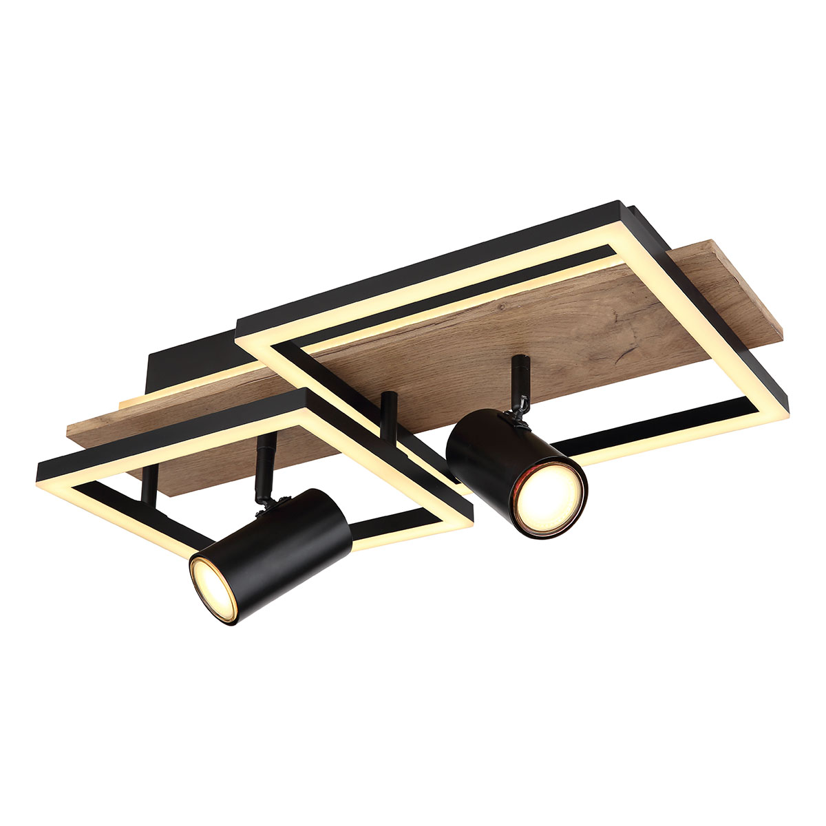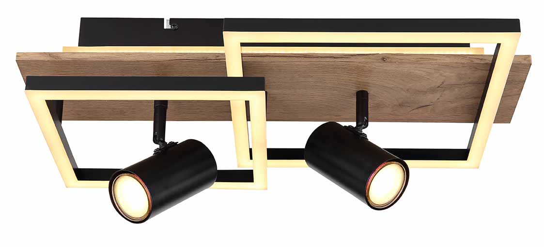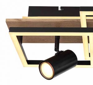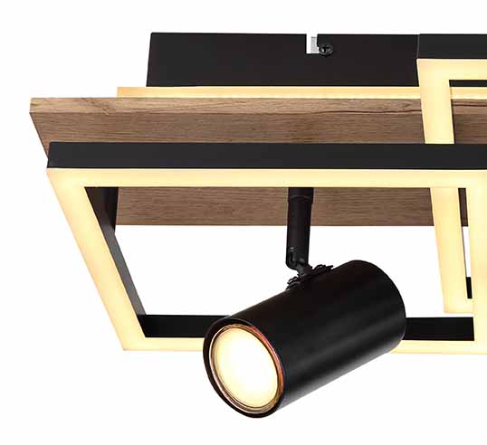 Diese stilvolle Deckenleuchte kombiniert innovative Technologie mit einem klaren und modernen Design. Mit 2 drehbaren GU10-Anschlüssen und 3 zusätzlichen LED-Panels erzeugt diese Lampe warmes, weißes Licht mit einer angenehmen Farbtemperatur von 3000 Kelvin. Das Gehäuse mit Holzoptik-Dekoration und rechteckiger Deckenmontage bietet die Möglichkeit, in 3 Stufen geschaltet zu werden, um die vollständige Lichtkontrolle zu ermöglichen. Die Speicherfunktion, die über den Wandschalter aktiviert wird, merkt sich deine letzte Einstellung, sodass du dein perfektes Licht jedes Mal beibehalten kannst.
