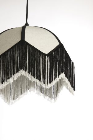 Schwarz-weiße Hängelampe mit Fransenabschluss Light & Living Sulina