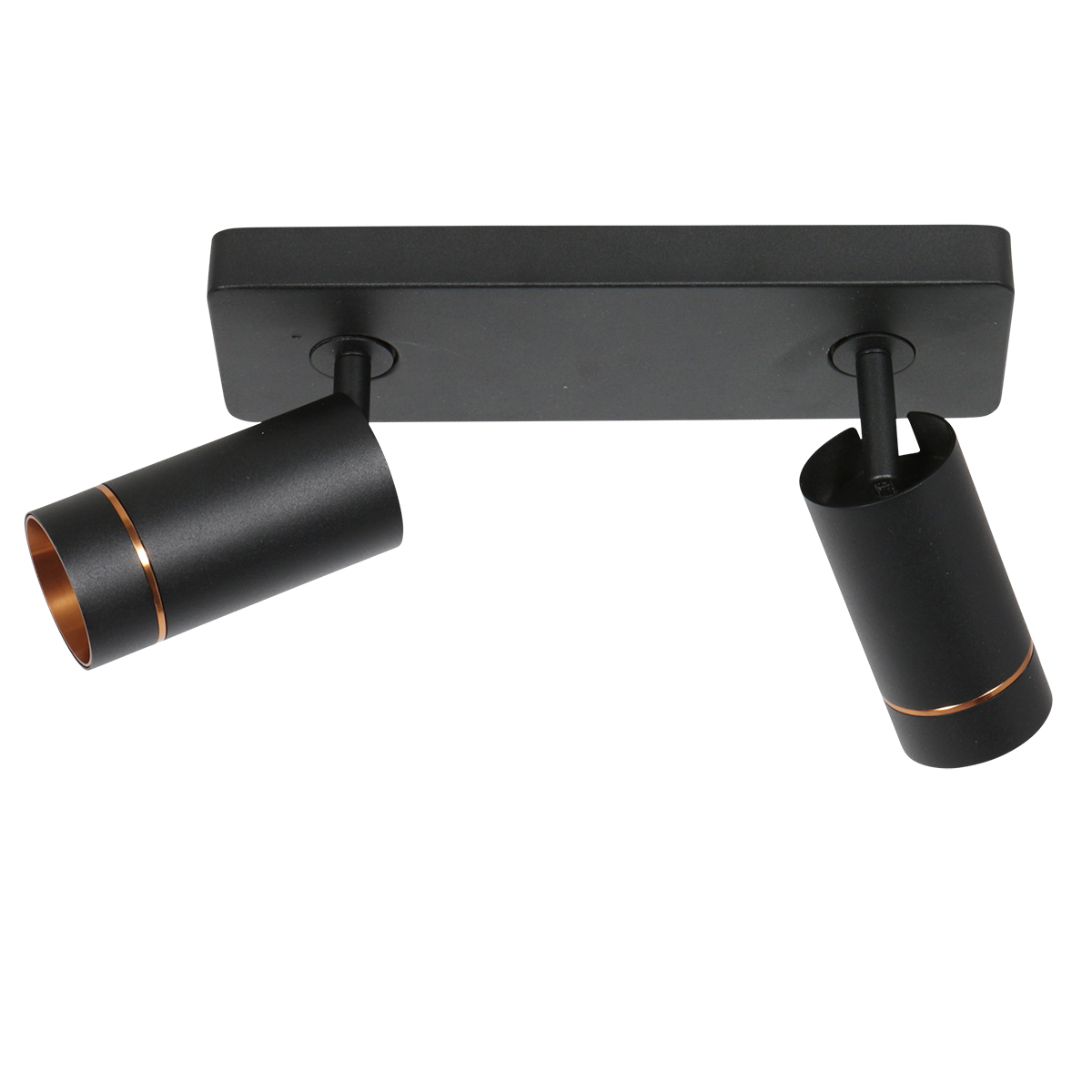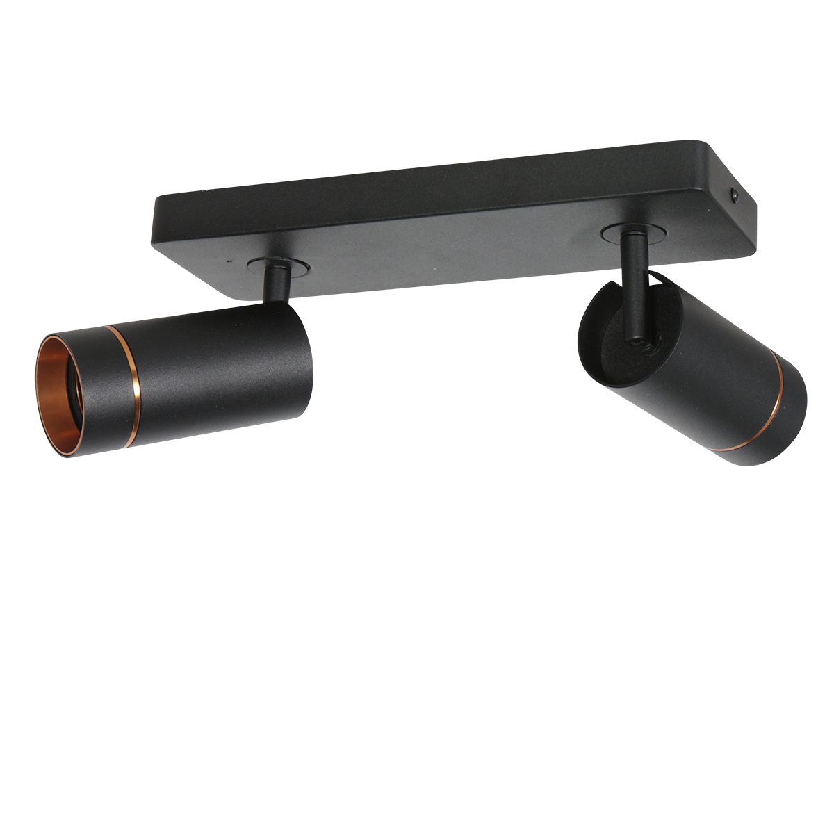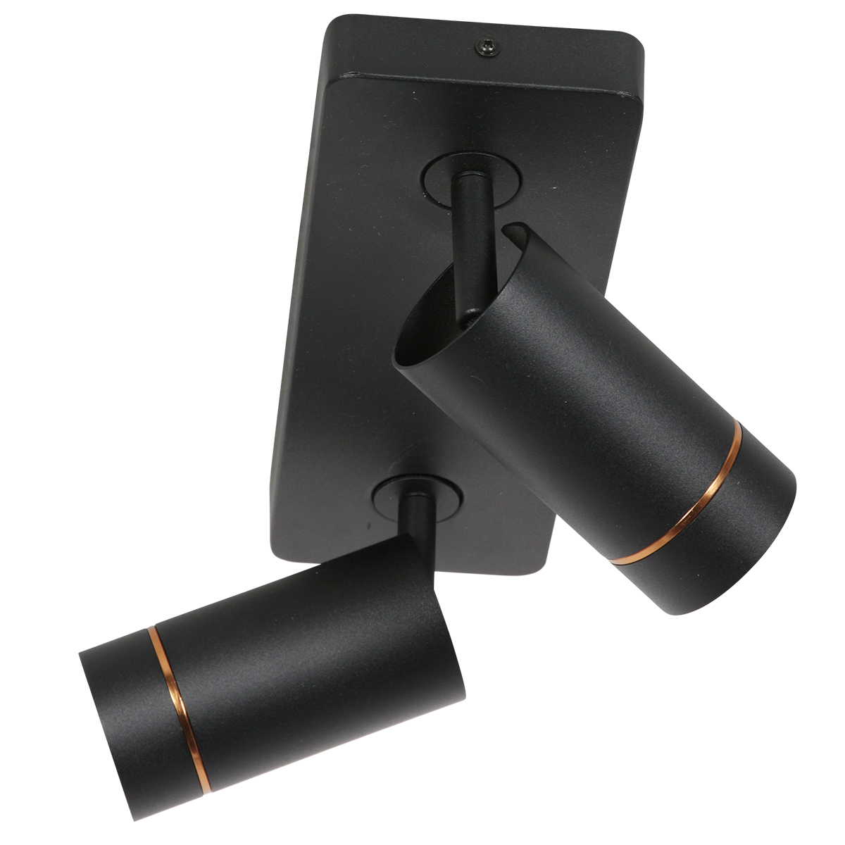 Schwarze 2-flammige Spotlampe mit goldenen Details Steinhauer Downlume