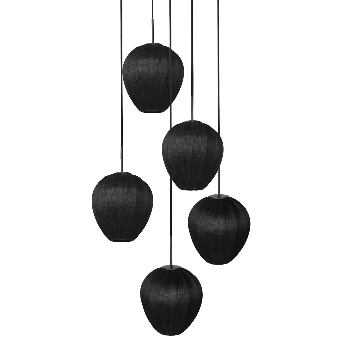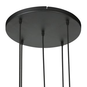 Schwarze 5-flammige Videlampe mit Leinenschirmen Mexlite HaloSwap