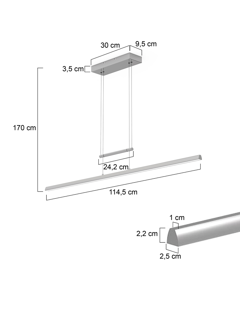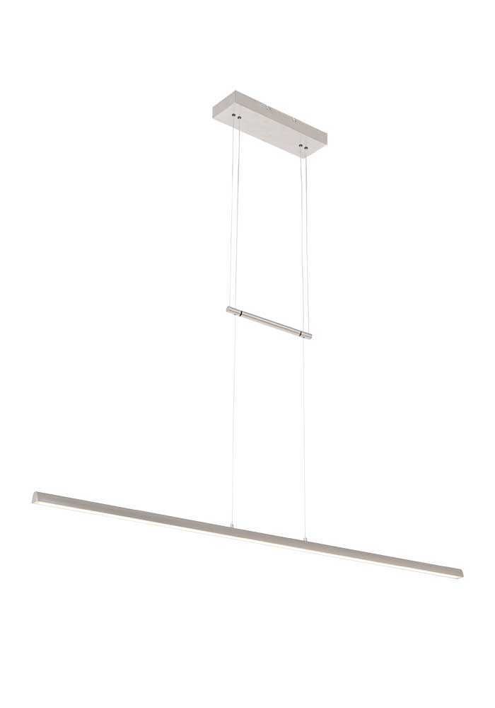 Bringen Sie moderne Eleganz in Ihr Interieur mit der stahlfarbenen Hängeleuchte aus der Profilo-Serie von Steinhauer. Diese stilvolle Hängeleuchte kombiniert ein klares Design mit funktionaler Beleuchtung und ist mit einem austauschbaren LED-Streifen von 16,8 Watt ausgestattet. Mit einer Lichtausbeute von 1700 Lumen genießen Sie sowohl stimmungsvolles warmes Gelblicht (2200 Kelvin) als auch hellweißes Licht (4000 Kelvin), perfekt für jede Umgebung. Dank der verstellbaren Höhe von 110 bis 170 cm und einer Länge von 114,5 cm passt diese Hängeleuchte mühelos über einen Esstisch oder eine Kochinsel.
