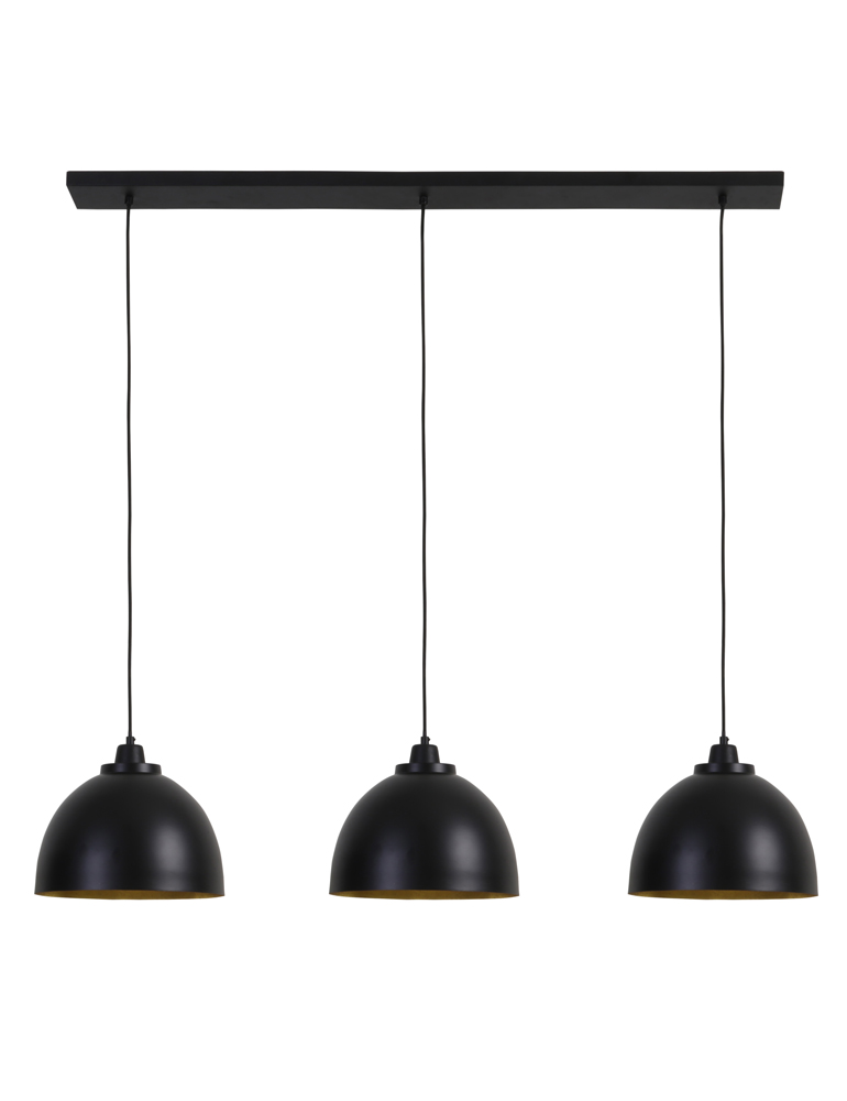 Suchen Sie noch eine schöne industrielle Lampe über Ihrem Esstisch? Dann müssen Sie sich unbedingt diese schwarze dreiflammige Hängeleuchte von de Marke Light & Living anschauen! Die Lampe besteht aus drei Pendelleuchten die an einer breiten Deckenplatte befestigt sind. Die Lampenschirme sind schwarz und aus Metall. Wenn Sie gut hinschauen sehen Sie, dass die Innenseite gold ist. Das schwarze Metall gibt der Lampe einen industriellen Look. Die goldene Innenseite gibt der Lampe einen schicken Touch. Die Lampe ist ein echter Eyecatcher!