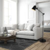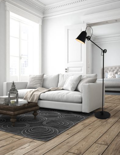 Diese verstellbare Stehlampe aus der Dolphin-Serie kombiniert ein klares skandinavisches Design mit industriellen Details. Der schwarze Metallrahmen und die weiße Innenseite des Schirms sorgen für eine subtile, zeitlose Ausstrahlung. Der Schirm hat einen Durchmesser von 13 cm und die Höhe ist zwischen 116 und 160 cm verstellbar. Ausgestattet mit einer E27-Fassung, geeignet für Lichtquellen bis 40 Watt.