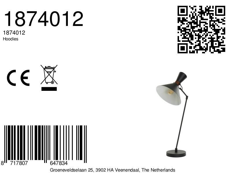 Schwarze kegelförmige Tischlampe Light & Living Hoodies