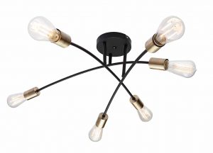 Bringen Sie einen Hauch von Eleganz in Ihr Interieur mit dieser stilvollen Deckenleuchte, die aus schwarzem Metall gefertigt und mit antikem Messing veredelt ist. Diese Lampe, die eine kraftvolle Mischung aus modernem und antikem Design präsentiert, verfügt über drei elegant geschwungene Arme und ist der ideale Blickfang für Ihr Wohnzimmer. Mit einem Durchmesser von 70 cm und ausgestattet mit sechs E14-Sockeln haben Sie die volle Freiheit, Ihre eigenen Leuchten bis zu 60 W auszuwählen, wobei LED-Lampen aufgrund ihrer langen Lebensdauer und Energieeffizienz empfohlen werden. Kombinieren Sie diese Lampe mit anderen Artikeln aus derselben Serie für ein konsistentes harmonisches Interieur.