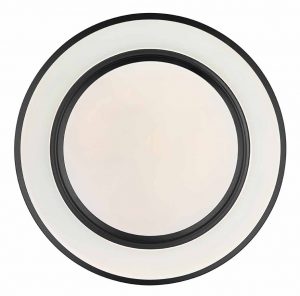 Die Sully Serie Deckenleuchte mit runder Form (Durchmesser 38 cm) ist eine stilvolle Ergänzung für jeden Raum, bestehend aus einem äußeren und inneren Ring aus elegantem schwarzem Metall, verziert mit opalem Kunststoff auf den inneren Oberflächen. Die Deckenleuchte ist mit mitgelieferten LEDs ausgestattet, die eine starke Lichtstärke von 1500 Lumen liefern. Mit der mitgelieferten Fernbedienung kann die Helligkeit des Lichts angepasst und die Farbtemperatur individuell in einem Bereich von Warmweiß (3000 Kelvin) bis Kaltweiß (6500 Kelvin) eingestellt werden, mit Optionen für RGB-Farben. Eine besondere Funktion dieser Lampe ist der Regenbogeneffekt-Modus, der eine einzigartige Atmosphäre schafft, indem der Raum in verschiedenen Farben beleuchtet wird.