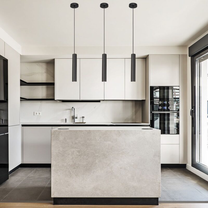 Moderne Hängelampe mit langem zylinderförmigem Schwarz Steinhauer Tubel
