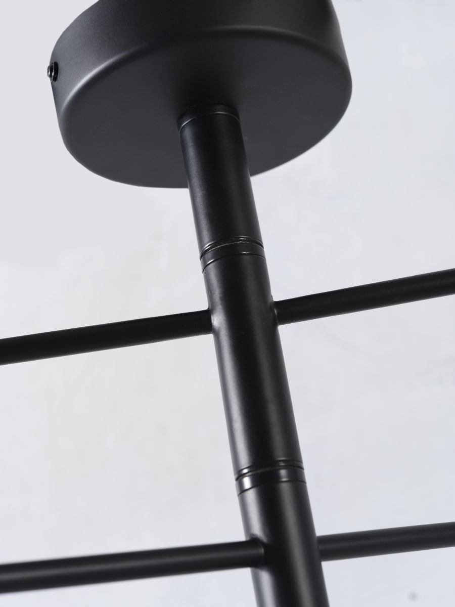Retro-Deckenleuchte aus schwarzem Metall, ideal für das Esszimmer. Ausgestattet mit sechs kleinen E14-Fassungen und staubdicht (IP20). Diese Lampe verleiht deinem Interieur eine klassische und elegante Ausstrahlung. Das metallische Design strahlt zeitlosen Charme aus, perfekt um eine stilvolle und raffinierte Essumgebung zu schaffen. Diese Lampe sorgt für eine optimale Beleuchtung mit einem Retro-Akzent.