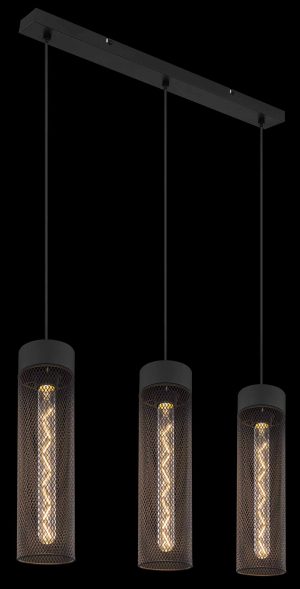 <pDiese Hängeleuchte aus der HANS-Serie ist eine elegante Ergänzung für Ihr Interieur. Die 60 cm lange Hängeleuchte besteht aus einem länglichen, schwarz-matten Metallwürfel, an dem drei schwarze Kabel mit zylindrischem Metallgitter hängen. Die E27-Anschlüsse geben Ihnen die Möglichkeit, die Lichtfarbe und Helligkeit bis zu einer maximalen Leistung von 40 Watt festzulegen. Darüber hinaus können Sie die Höhe der Hängeleuchte während der Installation auf bis zu 120 cm anpassen. Mit anderen Modellen derselben Serie können Sie eine stilvolle Atmosphäre in Ihrem Interieur schaffen und das Gesamtbild abrunden.