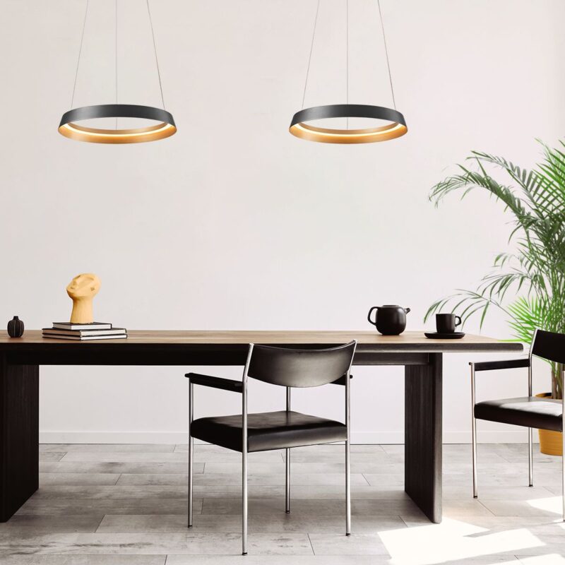 Schwarze Ring Hängelampe mit LED Beleuchtung Steinhauer Ringlux