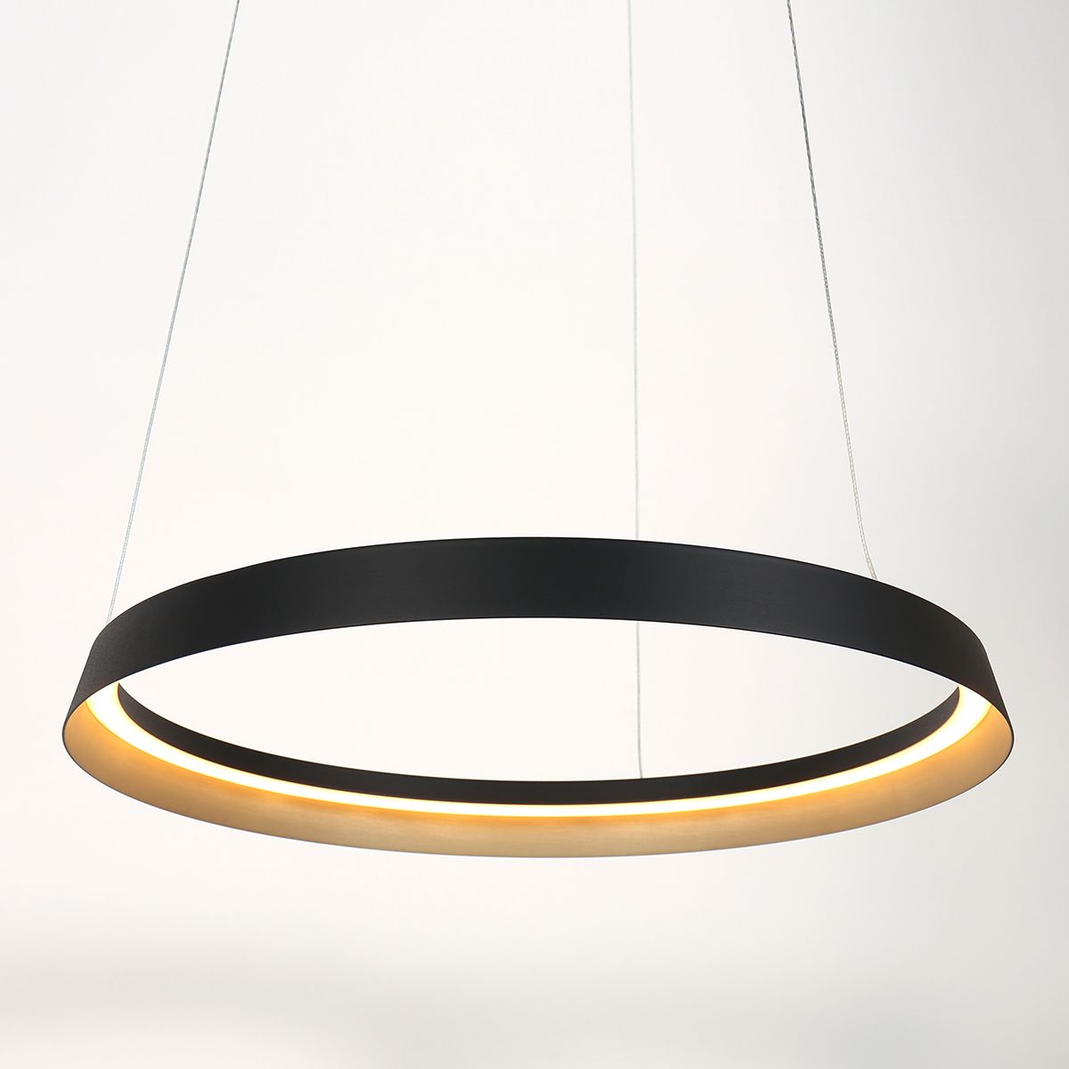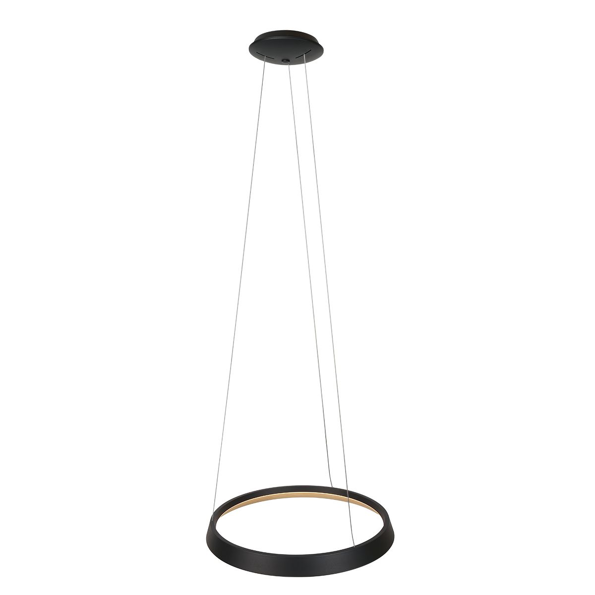 Diese Ringlux Hängeleuchte hat einen Durchmesser von 60 cm und hängt an drei verstellbaren Stahlseilen, die zwischen 40 und 150 cm einstellbar sind. Der leistungsstarke LED-Ring strahlt 4000 Lumen aus und ist über einen externen Dimmer dimmbar. Dank des modernen Designs und der vielseitigen Lichteinstellungen ist diese Lampe eine ideale Wahl für verschiedene Wohnräume. Geliefert mit 2 Jahren Herstellergarantie.