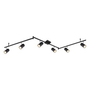 Verwandeln Sie Ihr Interieur mit dem eleganten Robby Deckenstrahler, dessen Design durch das matte schwarze Metallfinish besticht. Hergestellt mit drei raffinierten Metallstäben, enthält jeder Stab zwei drehbare GU10-Anschlüsse mit Metallbeschichtung. Diese Anschlüsse können mit Lampen Ihrer Wahl angepasst werden, sodass Sie die volle Kontrolle über Lichtfarbe und Helligkeit haben. Kombinieren Sie diesen Strahler mit anderen Teilen der Robby-Kollektion für ein raffiniertes, einheitliches Interieur.
