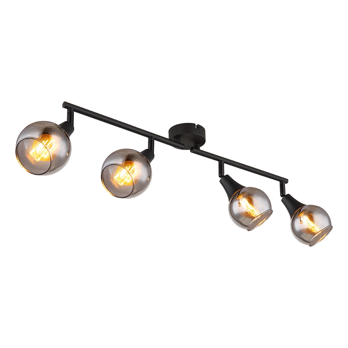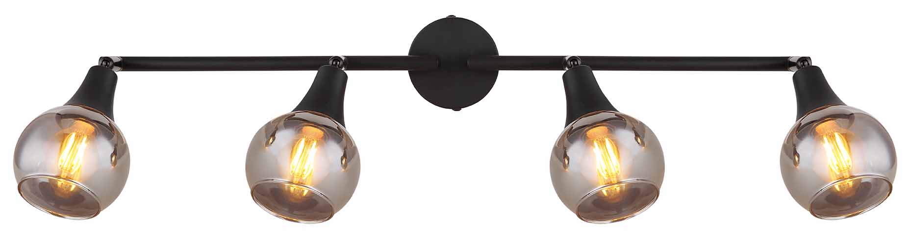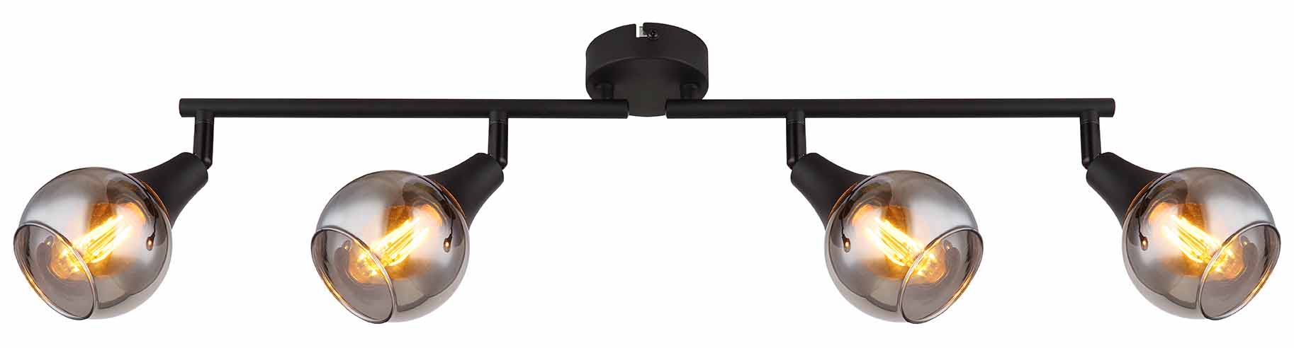 Dieser stilvolle und moderne Spot, hergestellt aus mattem Schwarzmetall, rauchigem Glas und gebürstetem Goldmetall, ist eine Bereicherung für jedes Interieur. Mit Abmessungen von 600x90x168mm ist dieser nicht nur großzügig in der Größe, sondern auch extrem flexibel – die Spots können nach Wunsch ausgerichtet werden, um die ideale Lichtverteilung zu erreichen. Der Spot funktioniert mit vier E14-Glühbirnen mit maximal 40W bei einer Spannung von 230V, bitte beachten: diese Lampen sind nicht enthalten. Dieses Schmuckstück mit hoher Verarbeitungsqualität verwandelt jeden Raum in eine moderne und beleuchtete Umgebung. Erleben Sie es selbst!