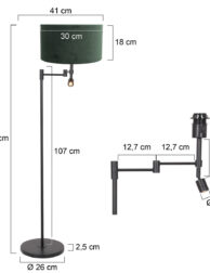 Die schwarze Stehlampe aus der Stang-Serie von Steinhauer kombiniert eine robuste Erscheinung mit luxuriösen Akzenten. Das stabile Metallgestell in mattem Schwarz wird stilvoll mit einem grünen Samtschirm ergänzt, was für eine warme und elegante Ausstrahlung sorgt. Die Lampe ist mit einer E27-Fassung ausgestattet, geeignet für Lichtquellen bis 40 Watt, und verfügt darüber hinaus über eine separate Leselampe mit 3 Watt, 2900 Kelvin und 300 Lumen, ideal für funktionale Beleuchtung.