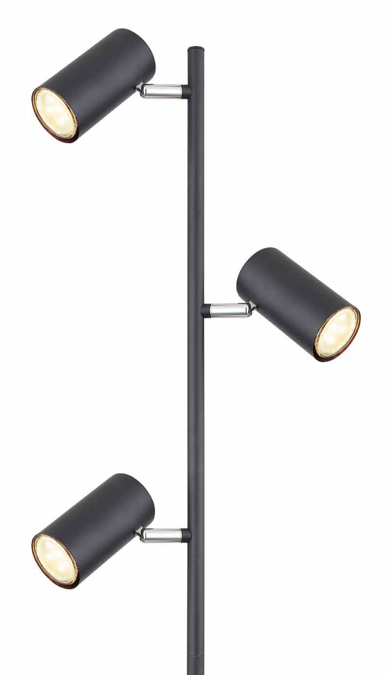 Erleben Sie eine fortschrittliche Beleuchtungslösung mit unserer Robby Serie Stehlampe, elegant aus mattem Schwarzmetall geschmiedet und mit einem runden Fuß für stabile Unterstützung versehen. Diese 154 cm hohe Lampe ist mit drei schwenkbaren GU10-Anschlüssen ausgestattet, stilvoll in Metall verpackt für ein professionelles Erscheinungsbild. Mit der Flexibilität, LED-Lampen Ihrer Wahl hinzuzufügen, können Sie die Lichtintensität und Farbe ganz nach Ihren Wünschen anpassen. Darüber hinaus macht der beiliegende Schalter die Bedienung der Lampe äußerst einfach. Komplementieren Sie Ihr Interieur, indem Sie dieses Modell mit anderen Stücken aus derselben Serie kombinieren.
