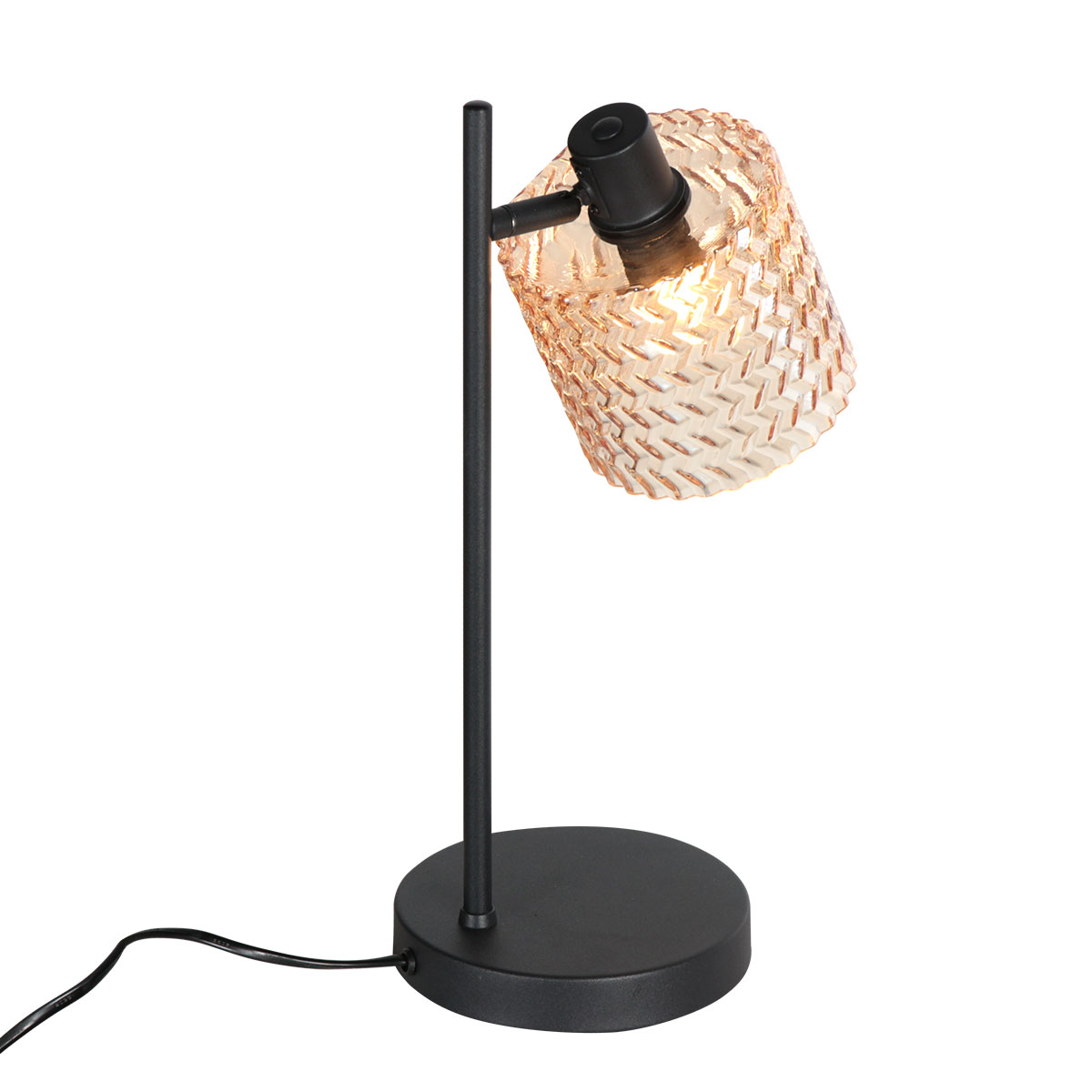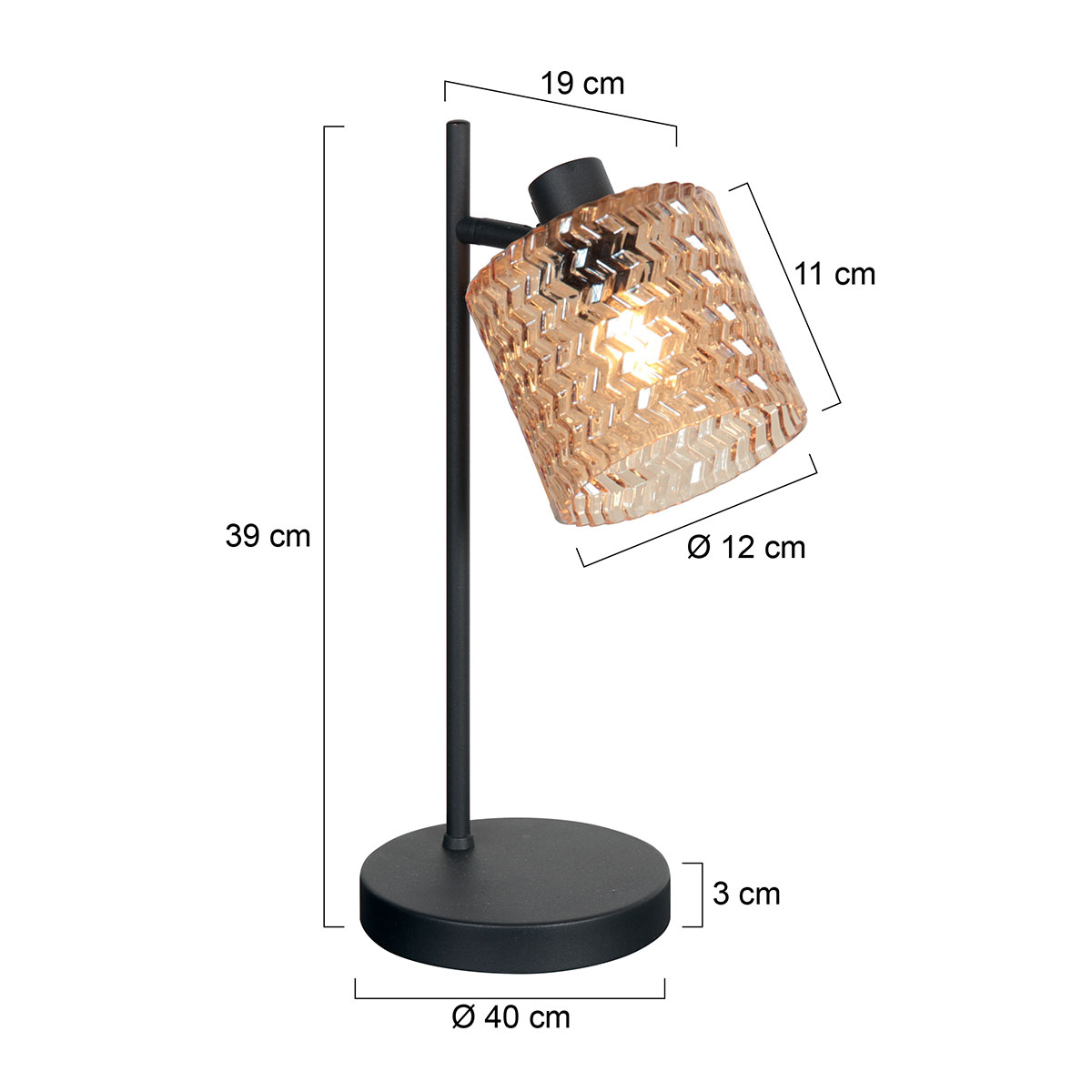 Schwarze Tischlampe mit bernsteinfarbenem Glasschirm Mexlite Ocre