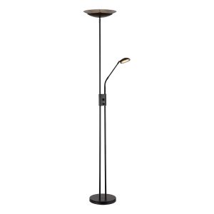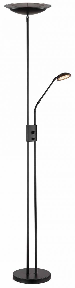 Entdecken Sie die subtile Schönheit dieser exquisiten umgedrehten Lichtquelle, hergestellt aus mattem Schwarzmetall und geräuchertem Glas, kombiniert mit einem Hauch von satinierter Plastik. Dank der beeindruckenden Maße (300 mm Durchmesser und 1785 mm Höhe) ist dieses Stehlampe ein auffälliges Element in jeder Umgebung. Die Lampe strahlt warmes Licht aus, das nach Wunsch mit dem integrierten Touchdimmer gedimmt werden kann, während der Flexo-Arm Bewegung und Anpassung ermöglicht. Das Paket enthält zwei Lampen, eine 18,5 W LED mit einer Lichtintensität von 1140 lm und einer Farbtemperatur von 3000 K, zusammen mit einer kleineren Leselampe mit einem Durchmesser von 10,5 cm, betrieben von einer 4,5 W LED, die 210 lm bei derselben Farbtemperatur ausstrahlt.
