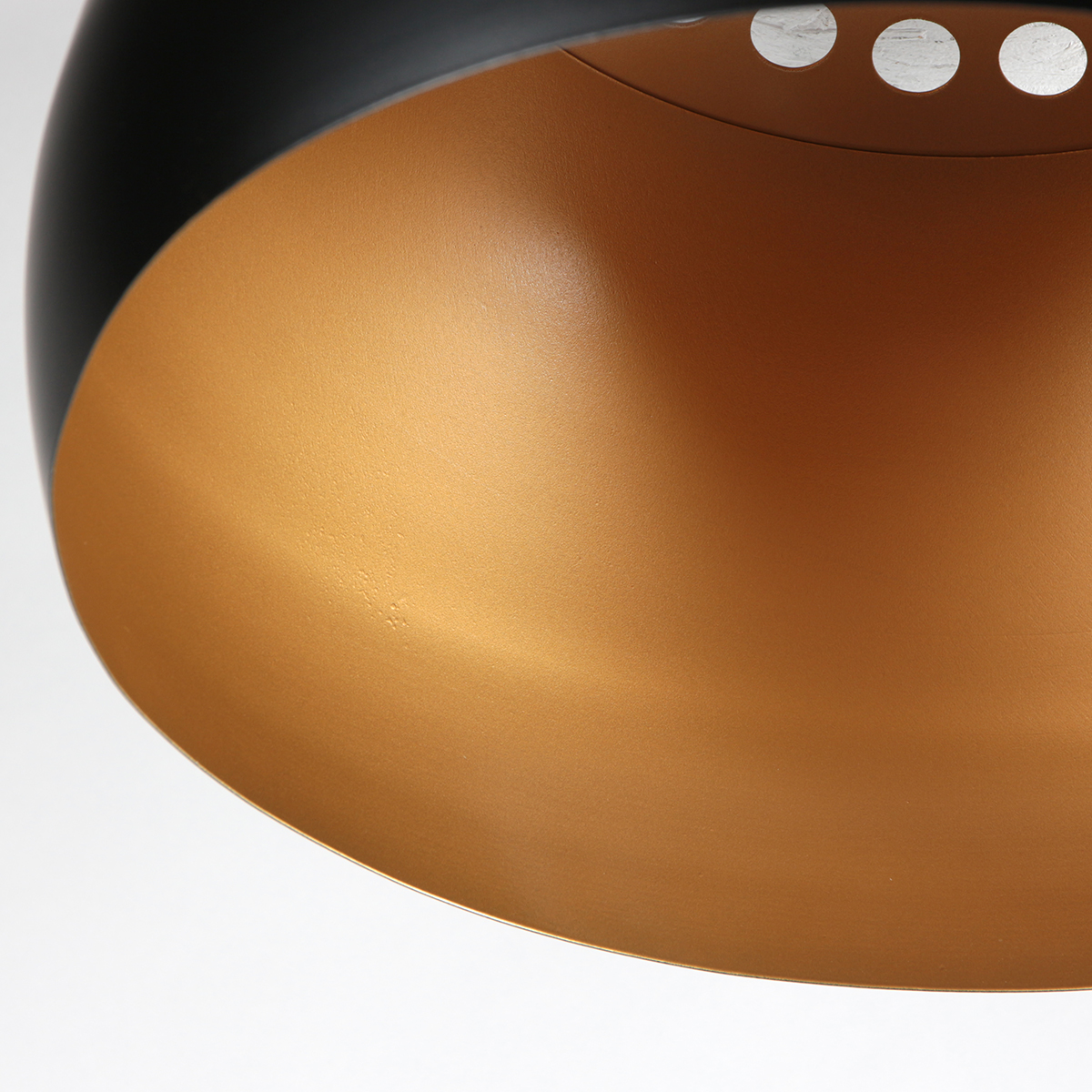 Dieser schwarze Lampenschirm mit 42 cm hat eine metallische Optik mit einer mattschwarzen Außenseite und einer warmen goldenen Innenseite. Durch den Kontrast zwischen Schwarz und Gold entsteht eine luxuriöse, hotelchice Ausstrahlung, die gut in ein modernes oder industrielles Interieur passt.