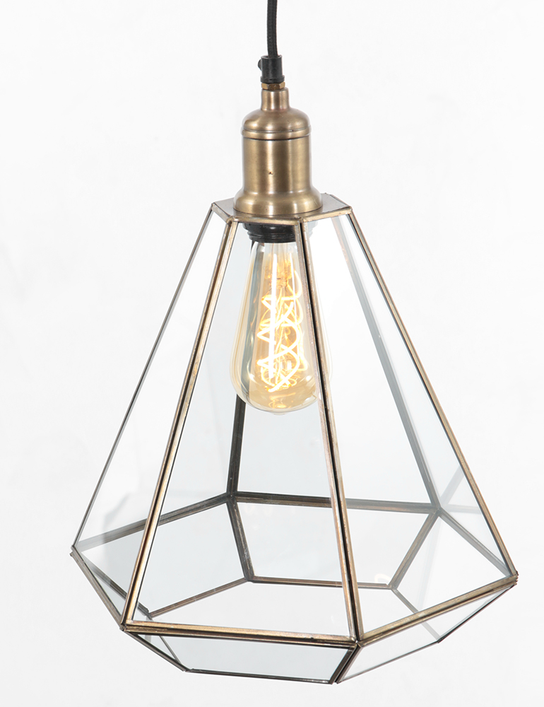 Sechseckige Pendelleuchte aus Glas Steinhauer Pimpernel bronze
