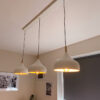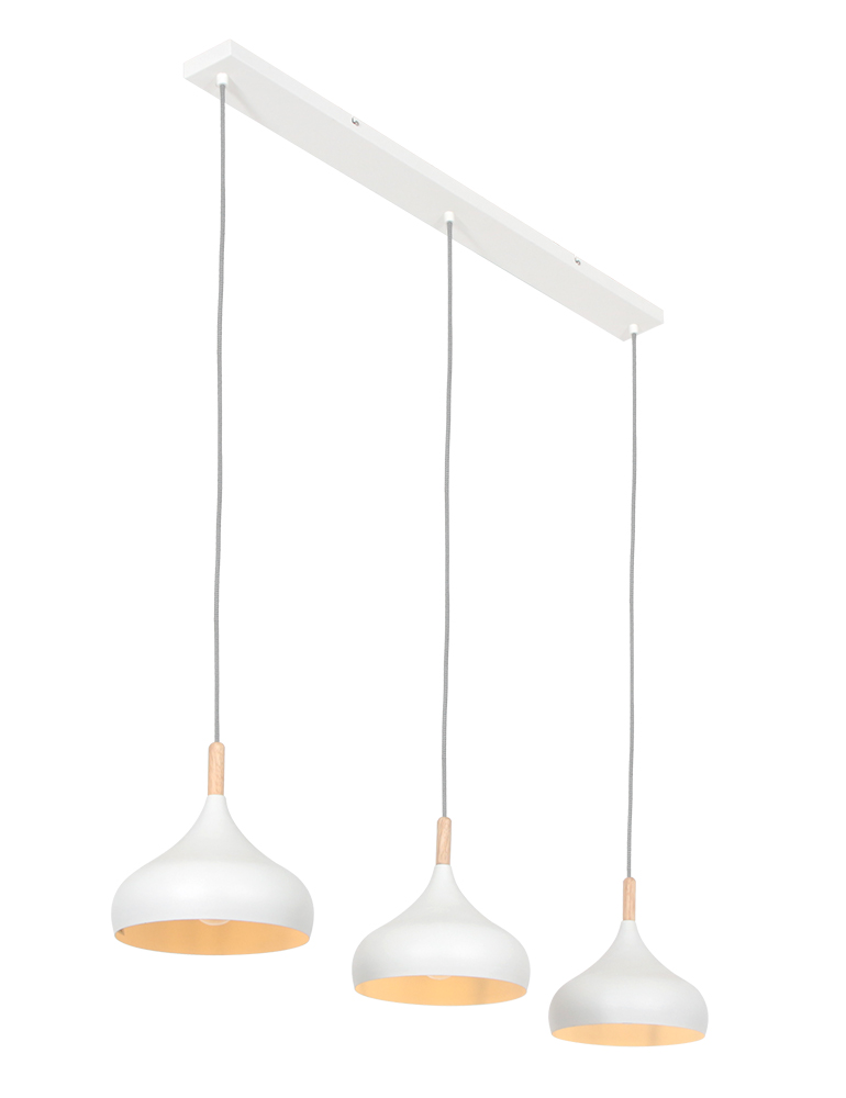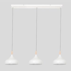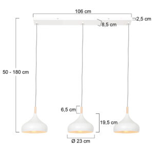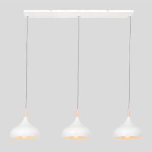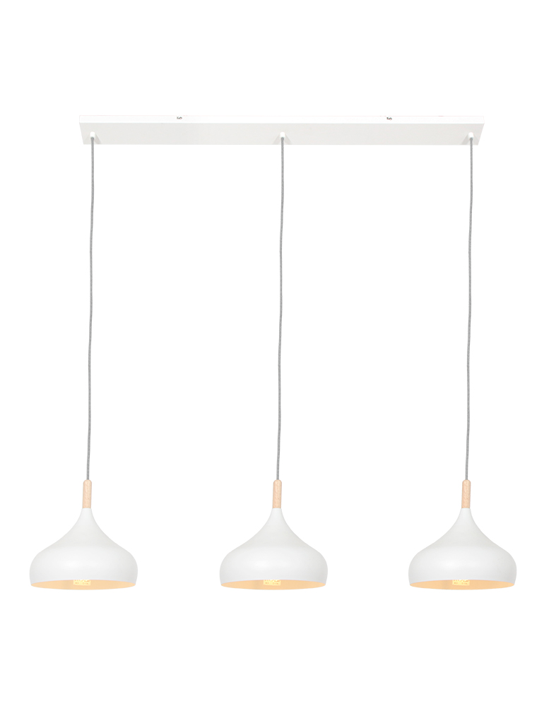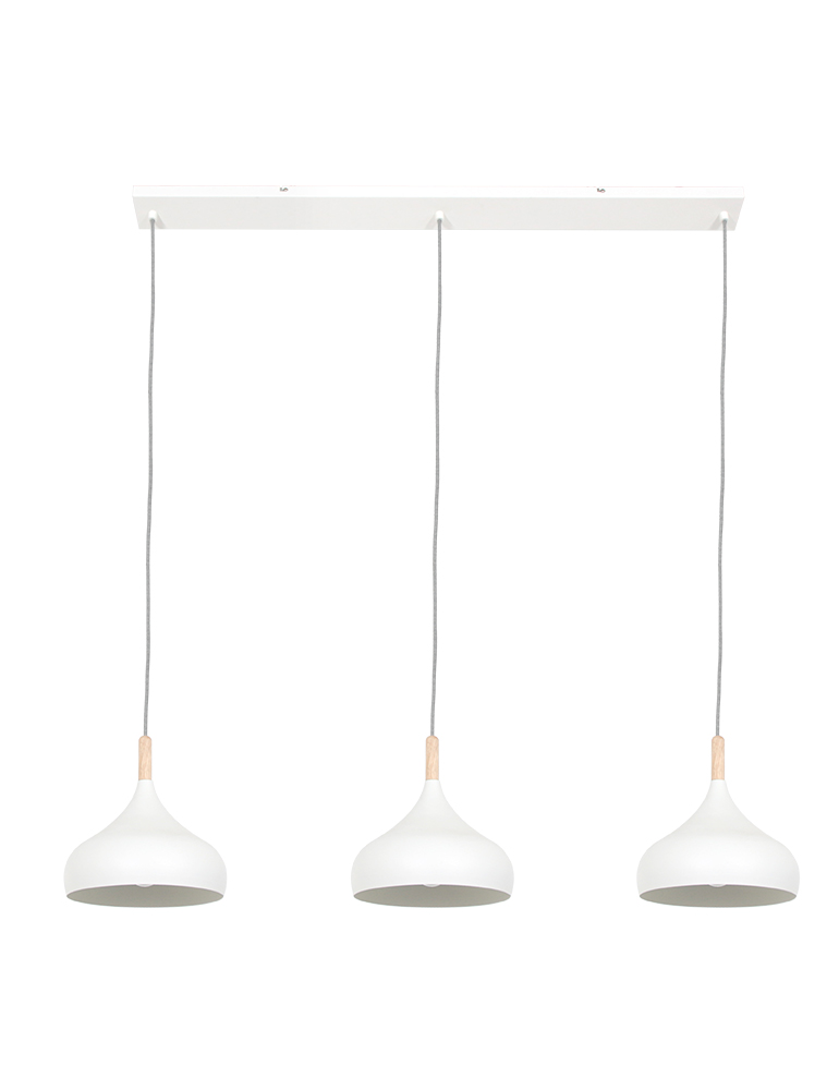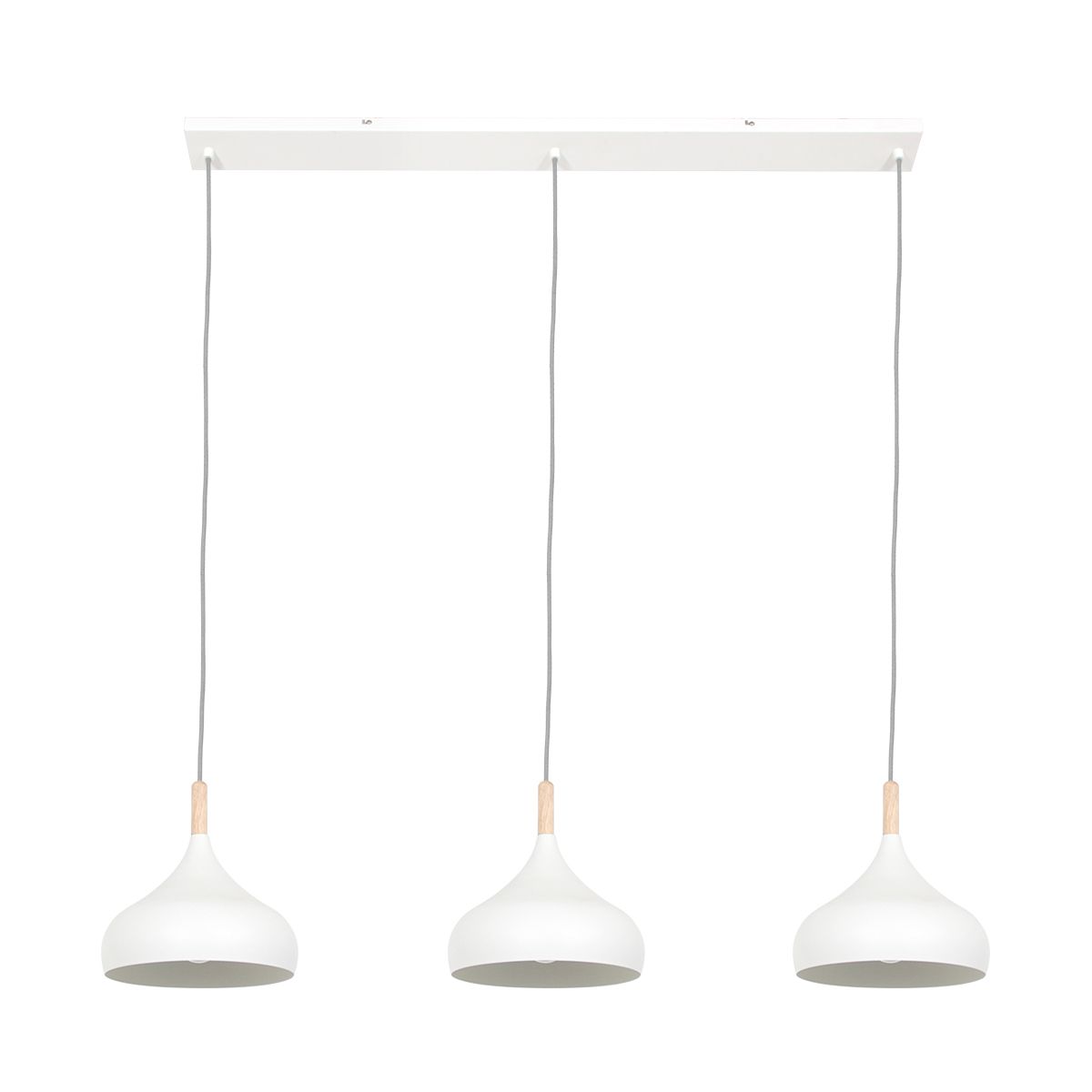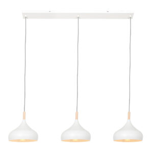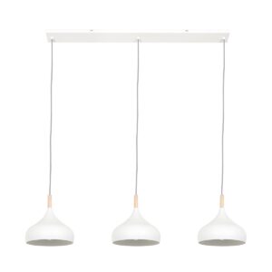 Die Bjorr dreiflammige Hängeleuchte strahlt skandinavische Einfachheit und Gemütlichkeit aus. Die drei weißen runden Reflektoren mit einem Holzakzent hängen an einem weißen Deckenbaldachin von 130 cm Breite. Die Höhe ist zwischen 50 und 180 cm verstellbar, sodass du sie perfekt an deinen Raum anpassen kannst. Ausgestattet mit drei E27 Fassungen, geeignet für Lichtquellen bis 40 Watt. Die Lampe ist mit einem externen Dimmer (nicht im Lieferumfang enthalten) dimmbar für zusätzliche Atmosphäre.