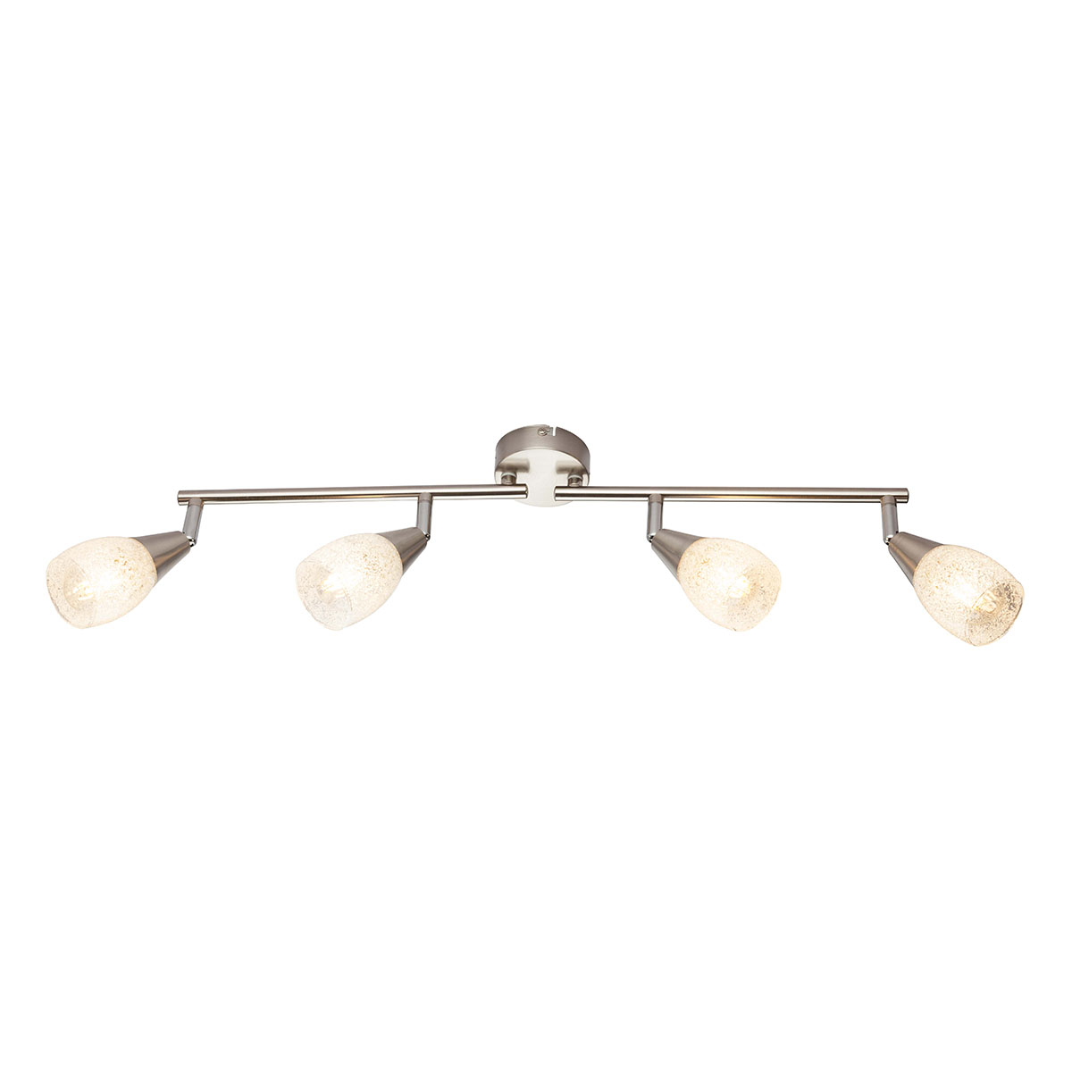 Verzaubern Sie Ihren Raum mit dieser eleganten Deckenleuchte, die mit einer hochwertigen Nickeloberfläche für ein dezentes mattes Finish versehen ist. Sie verfügt über vier bewegliche Lichtpunkte aus kristallklarem Glas, die wunderschön funkeln, wenn sie eingeschaltet sind. Dank der vier E14-Fassungen können Sie die am besten geeigneten Leuchtmittel ganz nach Ihren Wünschen auswählen (bis zu einem Maximum von 25W pro Fassung), wodurch Sie die Intensität und Farbtemperatur des Lichts nach Ihrem Geschmack einstellen können. Kombinieren Sie dies mit zusätzlichen Leuchten aus derselben Serie, um die perfekte Lichtatmosphäre in Ihrem Zuhause zu schaffen.