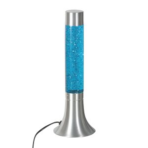 Die Volcan Glitter Tischlampe von Mexlite ist ein einzigartiger Blickfang, der sofort eine verspielte und magische Atmosphäre in Ihr Interieur bringt. Das stählerne, raketenförmige Gestell in Kombination mit der transparenten Flasche, gefüllt mit blauer Flüssigkeit und Glitzer, sorgt für einen bezaubernden Lichteffekt. Dies macht die Lampe zu einer kreativen und stimmungsvollen Ergänzung für jeden Raum.
