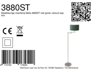 Diese Stahl-Stehlampe von Mexlite Bella mit grünem Lampenschirm bringt einen lebendigen und modernen Akzent in Ihr Interieur. Perfekt für (Heim)büros, Esszimmer und Wohnzimmer kombiniert diese Lampe Metall und Stoff für eine frische Ausstrahlung. Die Höhe von 154 cm sorgt für eine subtile, aber effektive Beleuchtung.
