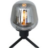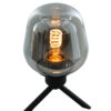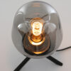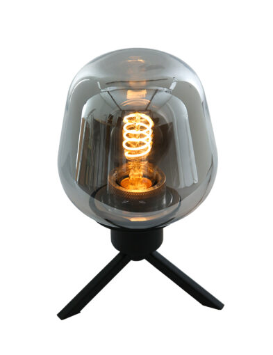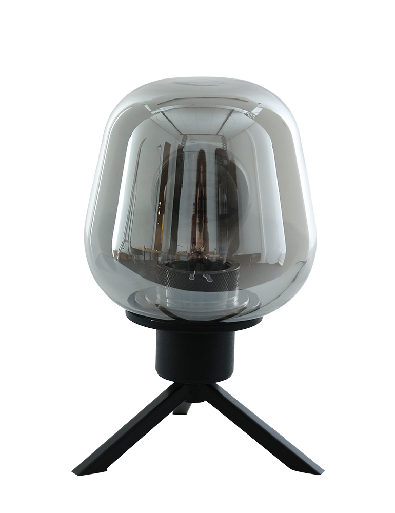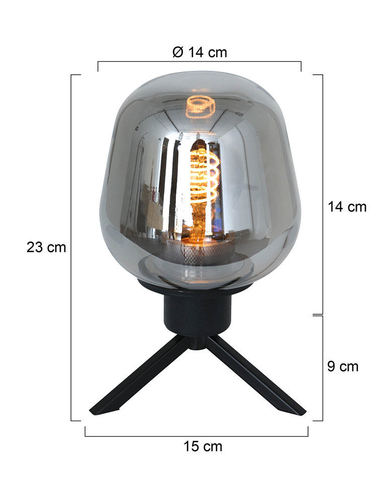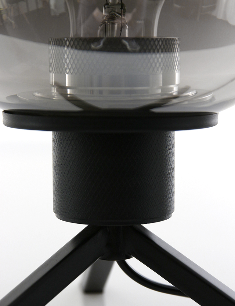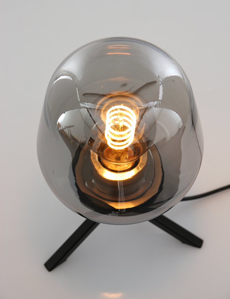 Liebst du das mysteriöse Licht von dunklem Glas und suchst du nach einem stimmungsvollen Tischlampen? Diese Reflexion hat einen gewölbten Schirm aus spiegelndem Rauchglas auf einem schlichten Dreibein aus schwarzem Metall. Die Fassung mit feinem Webmuster ist im Inneren des Schirms silberfarben. Schön in einem industriellen oder Vintage-Interieur. Schau dir auch die zwei anderen Formen und die auffälligen Hängeleuchten an!