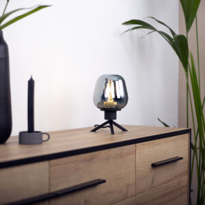 Die schwarze Tischlampe aus der Reflexion-Serie kombiniert elegantes Design mit stimmungsvoller Beleuchtung. Der spiegelnde Rauchglasschirm und das Metall-Dreibein verleihen der Lampe eine moderne Ausstrahlung. Mit einer Höhe von 23 cm ist sie ideal für Tische oder Nachttische. Ausgestattet mit einer E27-Fassung, geeignet für Lichtquellen bis 40 Watt. Das 150 cm lange Kabel verfügt über einen Ein/Aus-Schalter für Benutzerfreundlichkeit.
