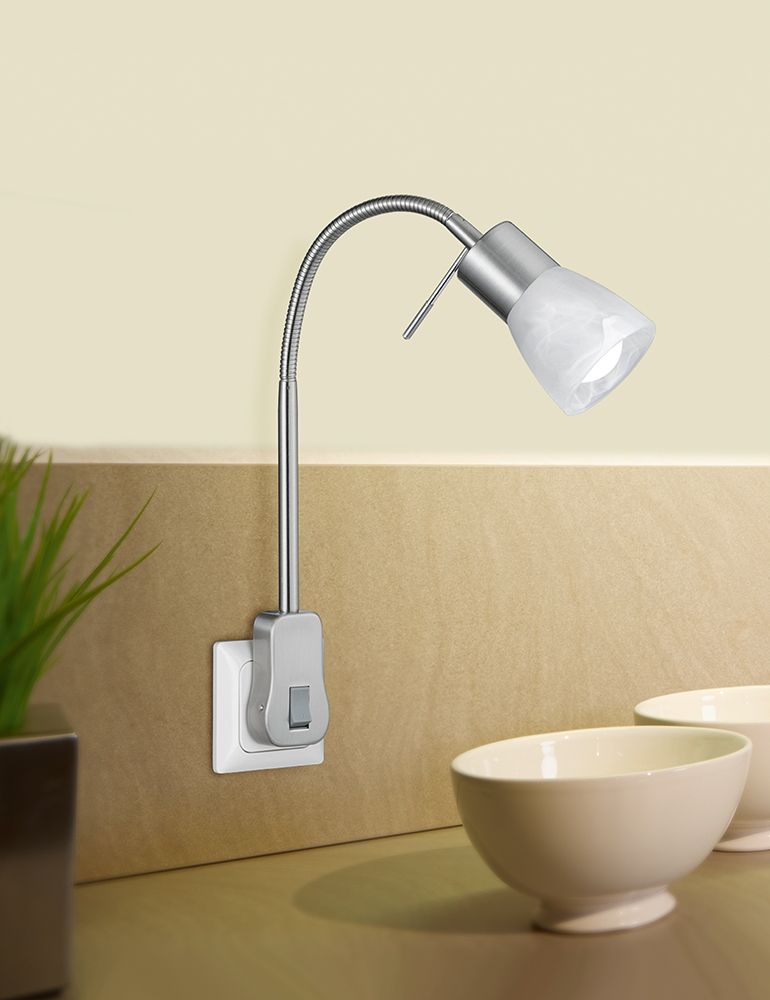 Die Lampe Levisto von der Marke Trio Leuchten eignet sich perfekt als Leselampe oder Nachtlampe. Sie hat kein Kabel, sondern wird direkt in die Steckdose eingesteckt. Eine Lampe mit mattem modernen Design.