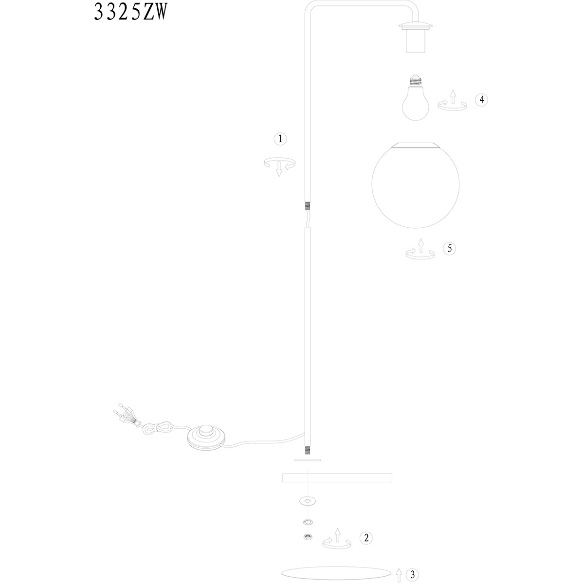 Stehlampe mit Rauchglaskugel mit neigbarem Arm Steinhauer Bollique