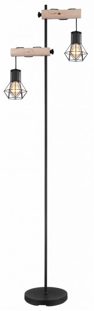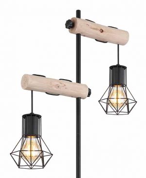 Diese stilvolle Stehlampe kombiniert Holz und Metall für einen einzigartigen, industriellen Look. Die Lampe verfügt über einen runden Sockel, aus dem ein 1,7 m hoher schwarzer Stab emporragt, unterstützt von zwei verstellbaren Holzarmen, jeweils mit einer E27-Fassung und einem kunstvoll geformten Metallgitterschirm. Die Verwendung einer E27-Fassung ermöglicht es Ihnen, die Farbe und Intensität des Lichts nach Ihren Wünschen anzupassen, bis zu maximal 60 Watt. Für Nachhaltigkeit und Energieeffizienz sind LED-Lampen sehr zu empfehlen.