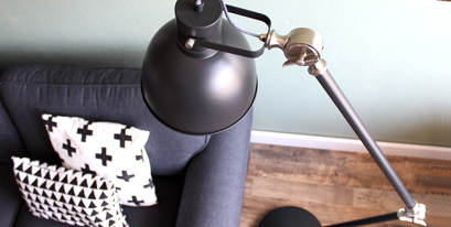 • Neben einem Lesesessel sorgt eine Stehlampe mit Leselampe für die perfekte Rückzugsecke.
