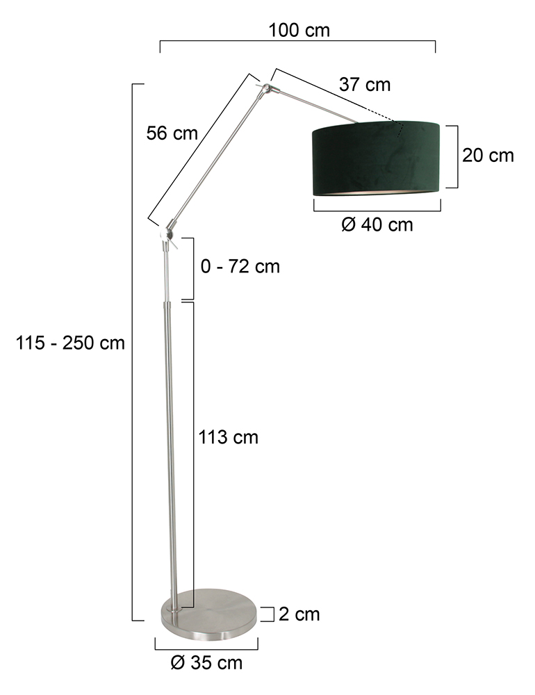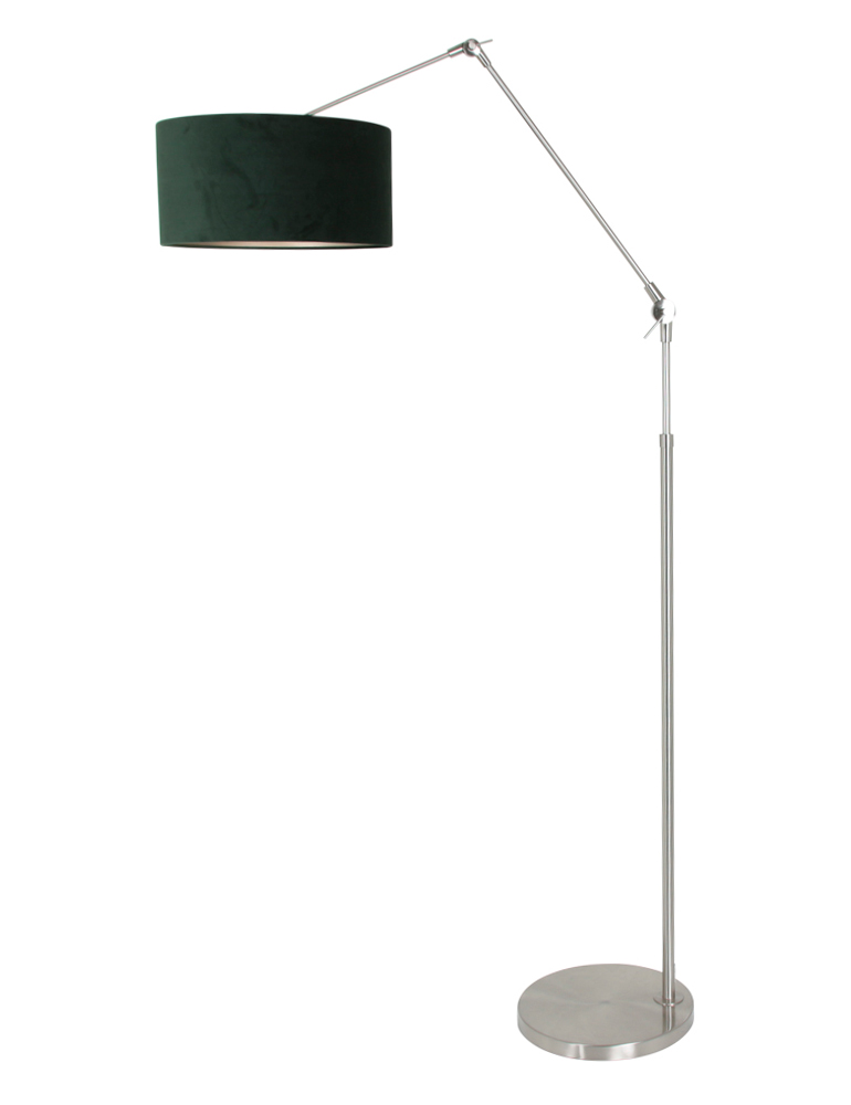Eine perfekte Kombination aus Stil und Funktionalität, diese Stehlampe mit grünem Velours-Schirm bringt eine warme und luxuriöse Atmosphäre in Ihr Interieur. Dank des verstellbaren Arms können Sie das Licht einfach anpassen, sodass Sie immer das richtige Licht haben, egal ob Sie lesen oder entspannen. Eine zeitlose Ergänzung, die mühelos in verschiedene Wohnstile passt.