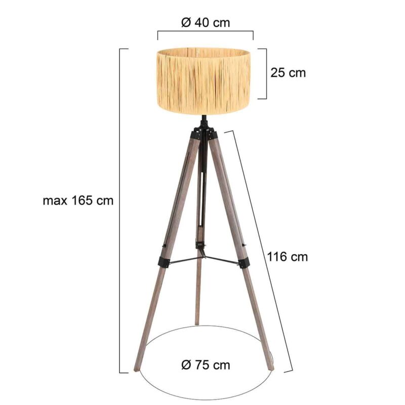 Bringe mit dieser ländlichen Stehlampe aus der Triek-Serie eine natürliche Atmosphäre in dein Zuhause. Der einzigartige Schirm aus Gras ist von Hand um einen Stahlrahmen gewickelt, was ein spielerisches Lichteffekt erzeugt. Das robuste Holz-Stativ in Dreibeinform, veredelt mit schwarzen Metallelementen, verleiht der Lampe eine rustikale Ausstrahlung. Ausgestattet mit einem Kabel mit integriertem Schalter für optimalen Nutzungskomfort.