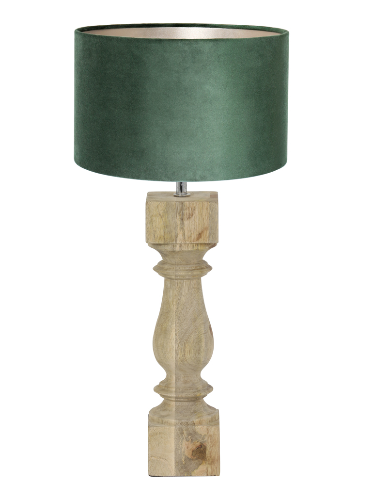Tischlampe aus Holz mit grünem Lampenschirm Light & Living Cumani