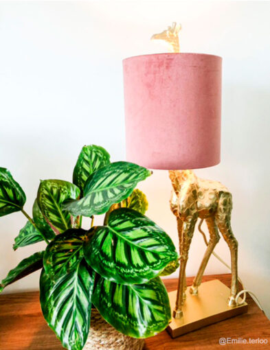 Die Giraffenlampe ist einfach der Wahnsinn. Sie ist wunderschön und im Dschungel-Stil gehalten. Das Lampenmodell ist etwas Besonderes und sehr trendy. Mit ihrem goldbronzefarbenen Körper und dem wunderschönen rosafarbenen Samtschirm darf diese goldene Giraffe in Ihrer Einrichtung einfach nicht fehlen. Beeindrucken Sie Ihre Gäste!