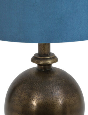 Tischlampe mit blauem Samtschirm Light & Living Kalym Bronze
