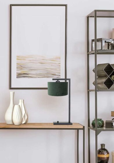 Die schwarze Metall-Tischlampe aus der Stang-Serie von Steinhauer strahlt Luxus und Eleganz aus. Der schlanke, matt schwarze Rahmen in Kombination mit dem tiefgrünen Samtschirm verleiht dieser Lampe ein schickes Aussehen. Die sanfte Textur des Schirms sorgt für eine warme und stimmungsvolle Lichtverteilung, perfekt für ein modernes oder klassisches Interieur.