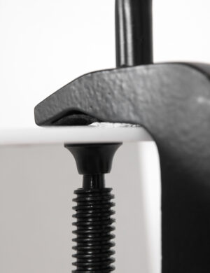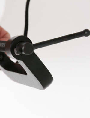 Die Klemmleuchte sieht den Modellen aus der Vintage-Ära ziemlich ähnlich. Sie kann um gedreht werden. Außerdem lässt sich die Neigung wie gewünscht und Situation verstellen. Die Lampe weist eine mittlere Patina auf. Sie können das Modell an einem Tisch befestigen und ist voll funktionsfähig. Diese Tischlampe im Vintage-Industriedesign besteht aus Metall und ist in der Farbe Schwarz gehalten. Die maximale Höhe beträgt 67 cm. Der Lampenschirm besitzt einen Durchmesser von 21 cm und eine Höhe von 10 cm. Die Lampe hat eine E27-Fassung.
