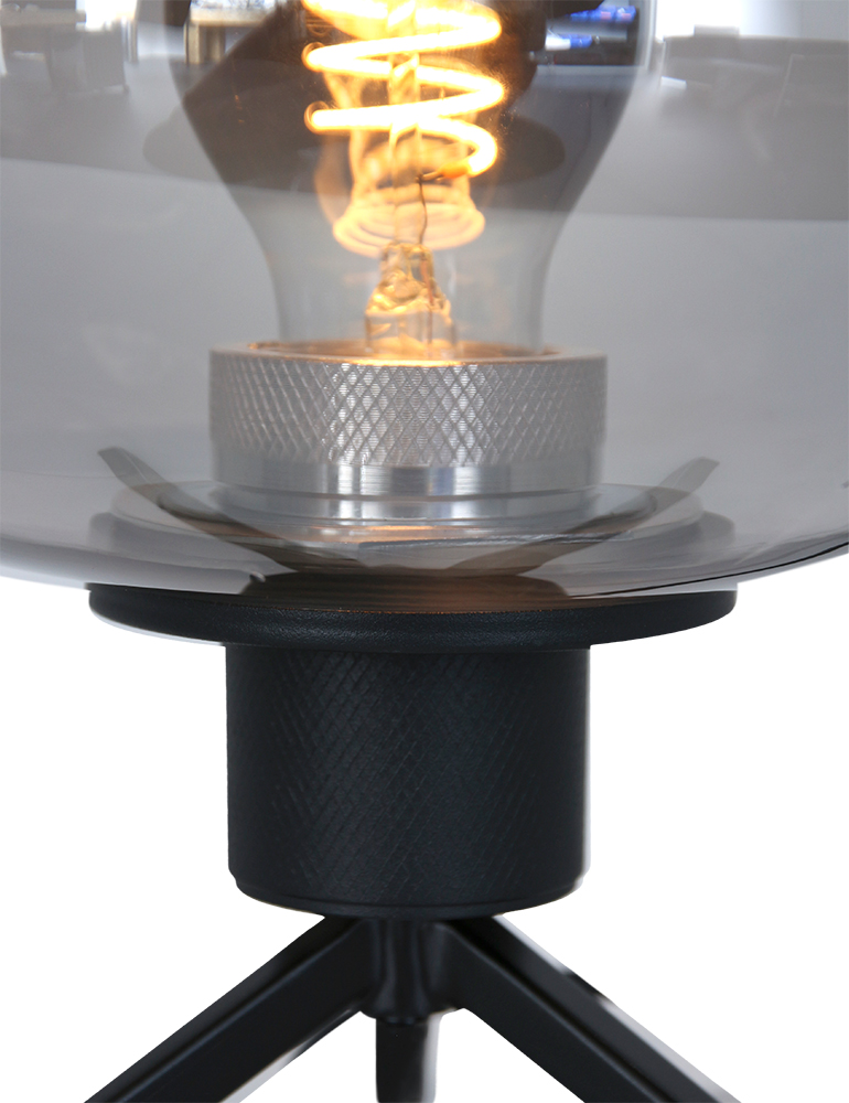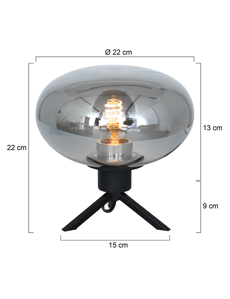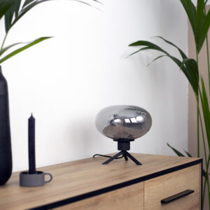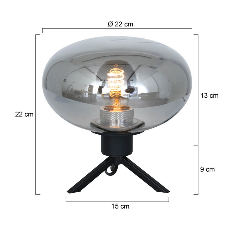 Die schwarze Tischlampe aus der Reflexion-Serie hat eine moderne Ausstrahlung mit einem eleganten dunklen Rauchglas-Schirm. Mit einer Höhe von 22 cm ist diese Lampe ideal für den Einsatz auf einem Schreibtisch, Nachttisch oder dekorativen Tisch. Die E27-Fassung ist geeignet für Lichtquellen bis 40 Watt. Ausgestattet mit einem schwarzen Kabel von 150 cm mit einem praktischen Ein/Aus-Schalter.