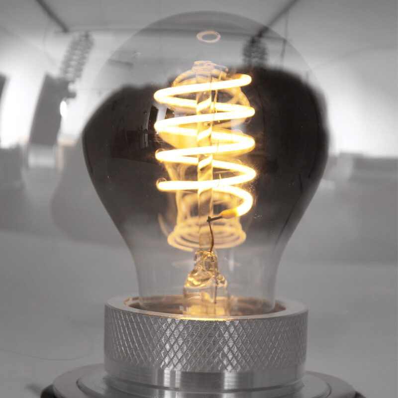 Klein aber auffällig, diese Reflexion Tischlampe mit spiegelndem Rauchglas-Schirm. Dieser ist auf einem robusten schwarzen Metall-Dreibein montiert. Die Form des Schirms ist originell, breit oval, und zieht mit einer Filament-Glühbirne extra Aufmerksamkeit auf sich. Allein schon ein Statement, aber besonders in Gesellschaft seiner anders gestalteten Brüder! Die verschiedenen Formen finden sich in den Reflexion Pendelleuchten wieder.