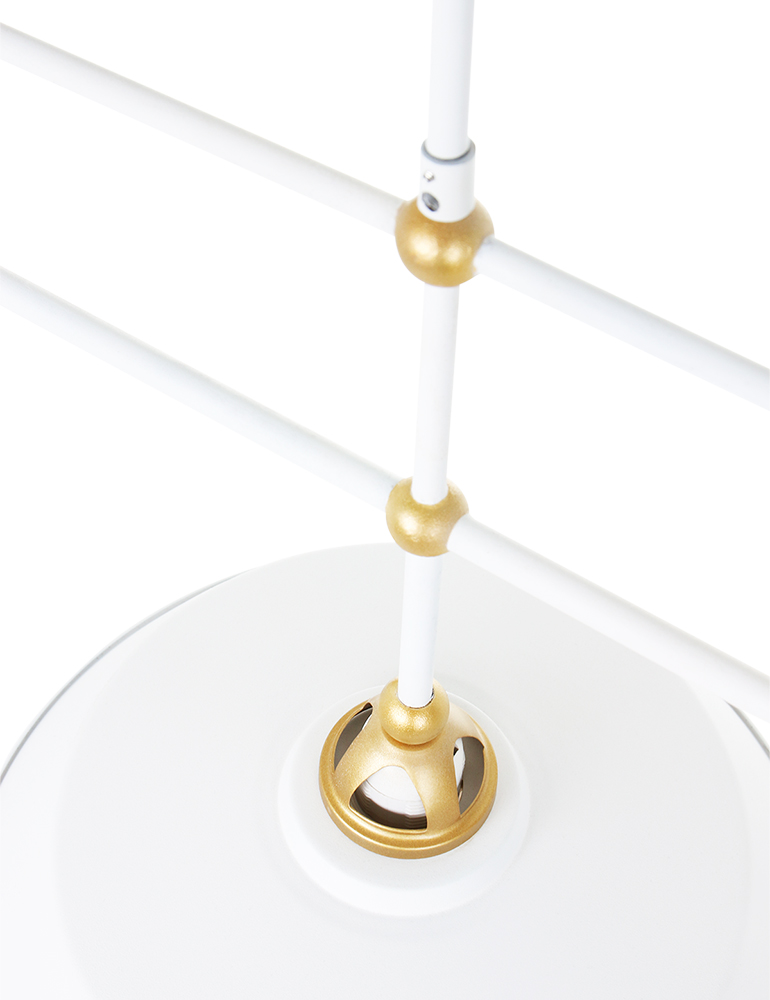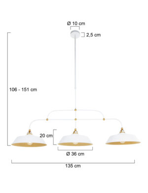 Erleuchten Sie Ihr Zuhause mit der Mexlite Nové Deckenleuchte in Weiß und Gold. Diese moderne Leuchte mit einem Durchmesser von 42 cm und einer verstellbaren Höhe von 106 bis 151 cm ist ein echter Blickfang. Sie wird ohne Leuchtmittel geliefert, akzeptiert jedoch E27-Glühbirnen und kann über einen externen Dimmer gesteuert werden. Die Mexlite Nové ist eine elegante Ergänzung für Ihr Interieur.