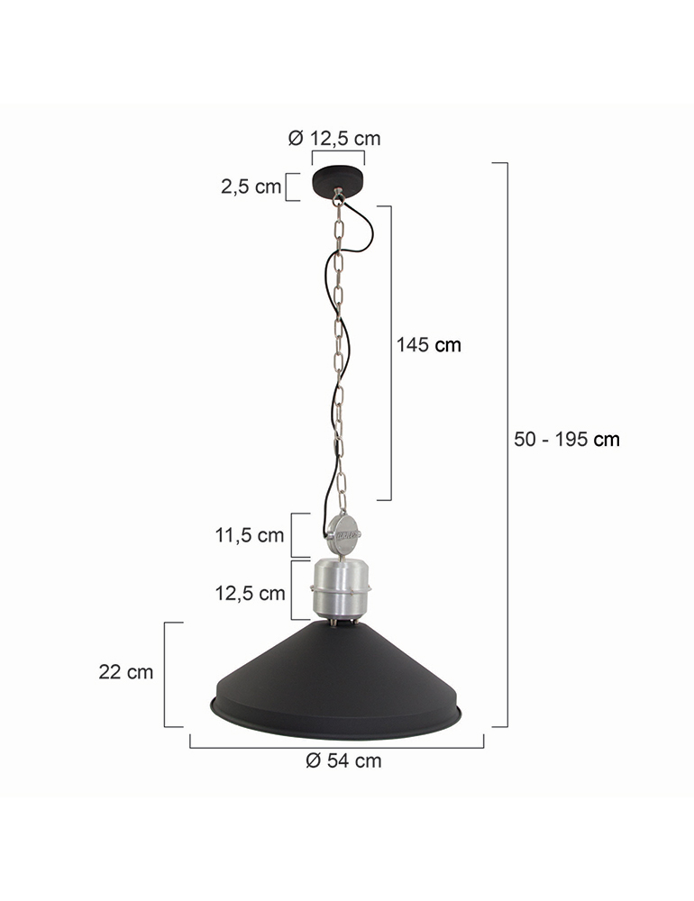 Suchst du nach einem schwarzen Blickfang von mehr als einem halben Meter Breite? Diese große Pendelleuchte von Anne Light&Home ist genau das. “Zappa” ist eine Esszimmerlampe im industriellen Stil. Oben auf dem Schirm sind stahlfarbene Details befestigt, an denen die robuste Kette hängt. “Zappa” hat in derselben Serie auch eine Tisch- und eine Stehlampe. Halte alles stilvoll und kombiniere sie alle!