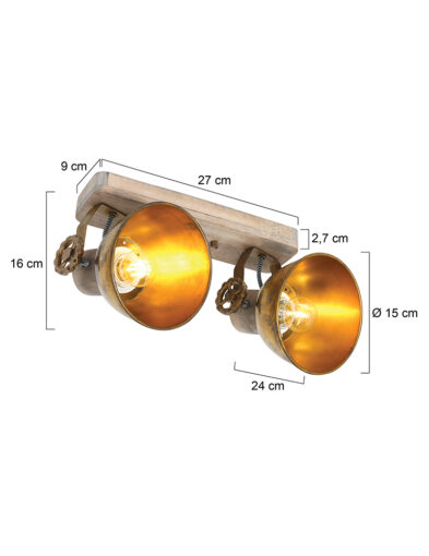 Der industrielle bronzene 2-flammige Decken- oder Wandleuchtenstrahler Gearwood von Mexlite ist eine robuste und vielseitige Lampe. Die beiden schwenkbaren und neigbaren Spots ermöglichen es, gezieltes Licht zu erzeugen, perfekt für funktionale oder stimmungsvolle Beleuchtung. Dank der großen Verstellräder kannst du die Richtung des Lichts einfach anpassen. Ausgestattet mit einer E27-Fassung, geeignet für Lichtquellen bis 40 Watt. Die Schirme haben einen Durchmesser von 15 cm und eine Gesamthöhe von 19 cm. Dimmbar mit einem externen Dimmer.